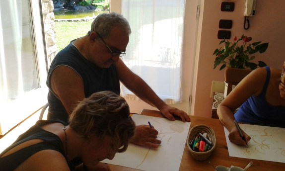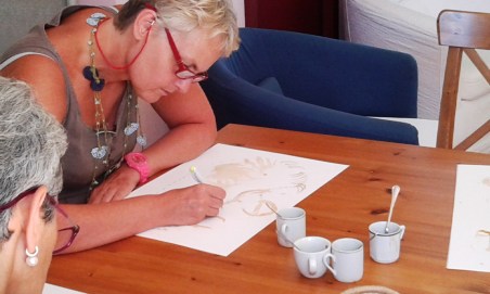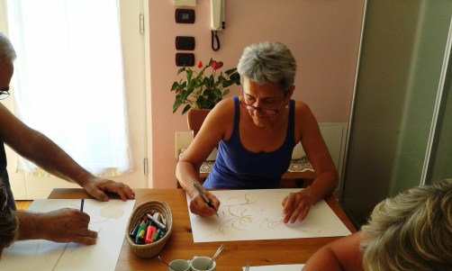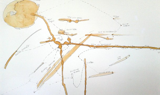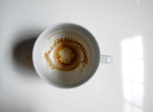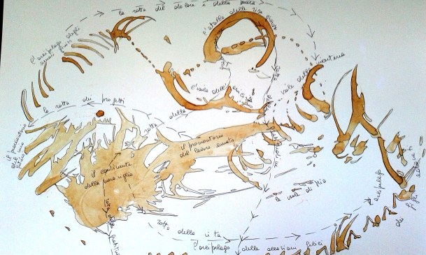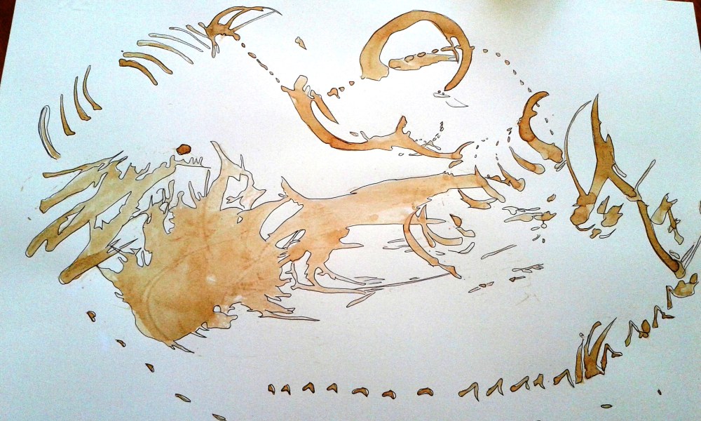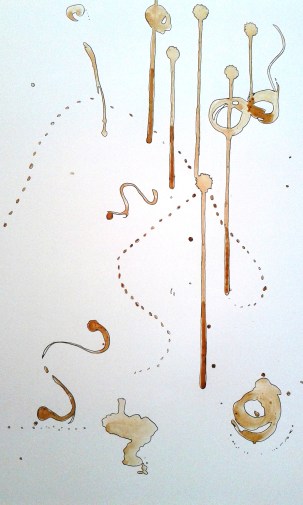 Lasciamo un po’ di caffè in fondo alla tazzina. Lo rovesciamo. Come avessimo pennelli, giochiamo con la tazza e il cucchiaino, spargendo l’aroma sul foglio fino a…