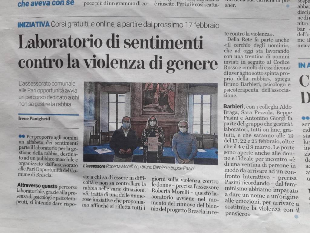 Art, Bresciaoggi del 10.2.22 Con l’assessora alle pari opportunità del Comune di Brescia Roberta Morelli e il collega dr Bruno Barbieri alla conferenza stampa di presentazione dei laboratori