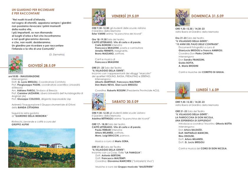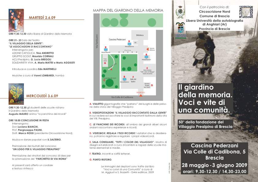 2009. IL GIARDINO DELLA MEMORIA. . Esposizione interattiva in occasione del 50.mo della fondazione del Vill.Prealpino di Brescia