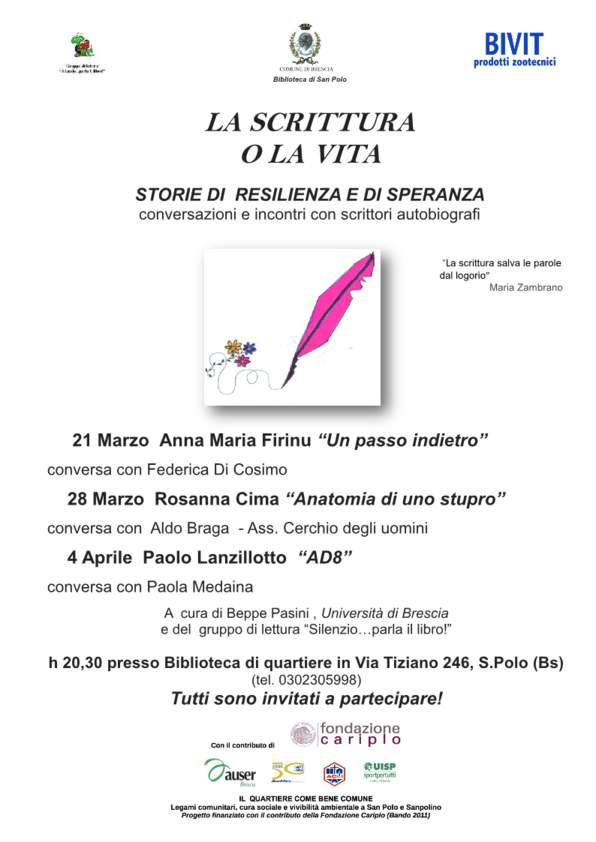 2014 LA SCRITTURA O LA VITA Rassegna di incontri con scrittori autobiografi. Q.re S.Polo (Bs)